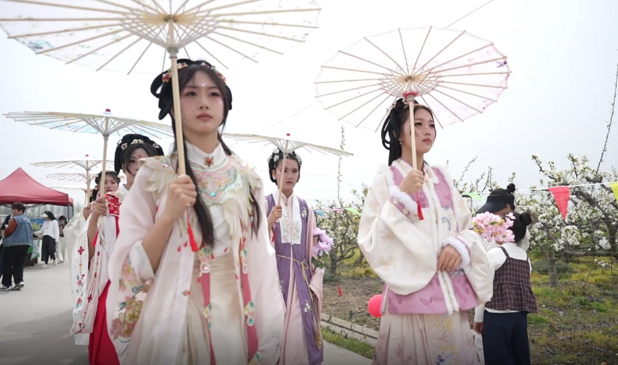 伴跟着涟漪的古琴声,一场别开生面的“十二花神游园”拉开帷幕。梨花主神C位领游,梅花、桃花、牡丹、石榴、荷花等十一位花神身着华服,手执油纸伞,沿戏班小路慢步巡游。旅客们纷纷容身拍照,千里浸式感受国风与田野好意思景结伙的专有韵味。