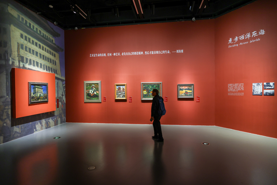 展览汇注的刘海粟作品,同样多达30余幅,有终点一部分为人人熟知。王静流露:“咱们在这次展览中琢磨,若何样通过不同的故事,让老演员从头登场,给人人带来极新感。”与颜文樑画作安定、风雅、严谨、学术所不同的是,刘海粟画作经常予东说念主热烈的视觉冲击,它们是张扬的,野蛮的。像在《落日》中,天空落日如火,呈发射状悬垂,弘大金黄麦田铺展,画面无论浓烈色调一经奔放笔触,齐可见梵高后印象派的影响。