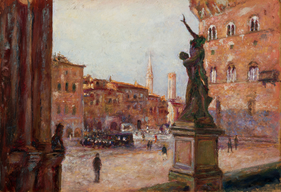 并置展出的作品《翡冷翠》和《佛罗伦萨广场》,让不雅众尤其能体会两位人人截然不同的艺术认识。这组作品均创作于1930年5月,北京配资刘海粟与颜文樑同游意大利的20多天里。那时,他们靠近佛罗伦萨吞并视角下的广场与雕镂,各私用画札纪录目下所见。《翡冷翠》出自刘海粟,有着灿烂的后光,浓郁的色调。《佛罗伦萨广场》出自颜文樑,尺幅简直唯有前者的四分之一,呈现出一种温情的渺小。两东说念主一动一静、一放一收,以各自不同的精彩共同书写了中国艺术对话寰宇的率先篇章。