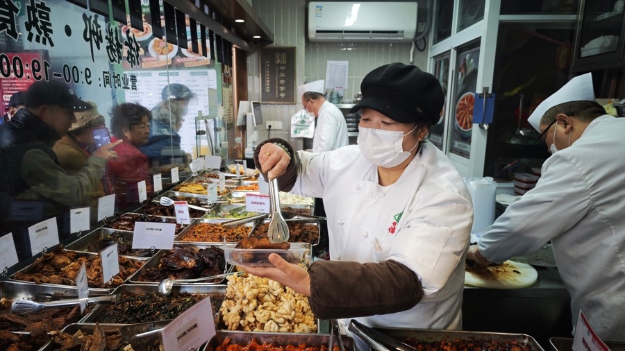 酌量到当代住户的饮食偏好,厨师团队有益对经典口味进行纠正。厨师长杨会忠先容,“比如牌号的红烧鳊鱼、红烧大排,咱们有益减少了用糖量,合适全家老少频频吃。扫数菜品齐是每天师父们到岗备料,坚合手当日现作念现卖,毫不售卖隔夜菜。”