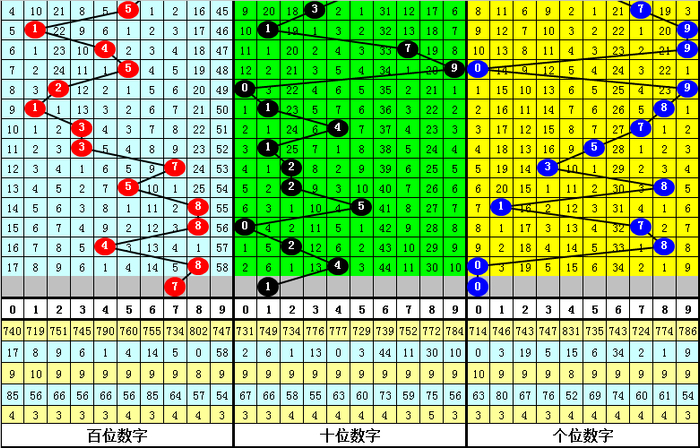 百位:近期大小 号码出现次数基本相配,上期开出大号之后,本期展望大号类似出现;另外,在最近20期开奖中,该位以1路和2路号码为主,0路号码出现相对较少,本期防0路号码再次轮空,参考号码7。