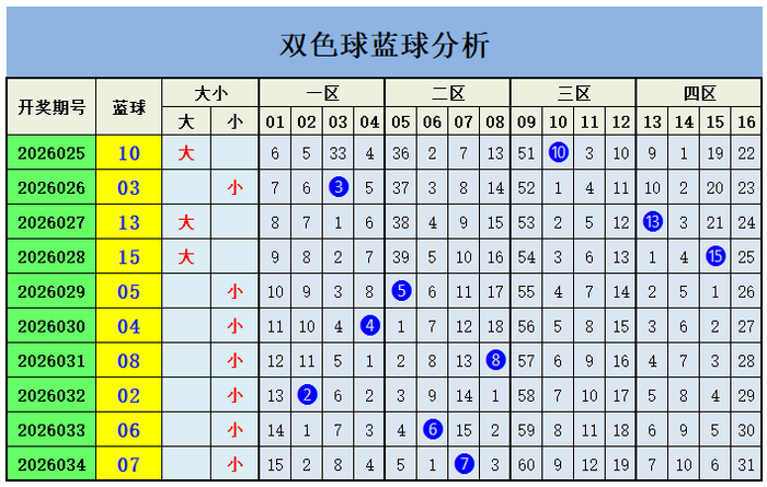 最近10期蓝球开出号码,四区比为:3:4:1:2,上期开出二区号,本期花式三区出号。推选号码:12