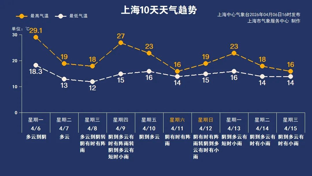 今天(4月6日),上海气温演出“狂飙”,中心城区最高温定格在29.1℃,热感全王人。