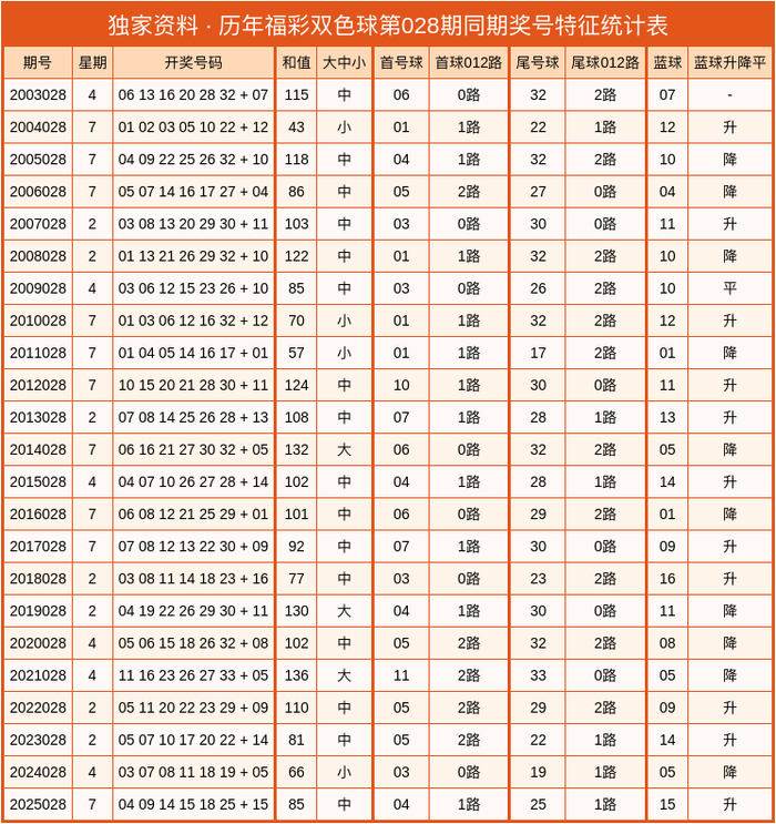 和值:客岁同时和值开出85,方法呈现为中数。对历史同时中的和值大中小方法进行统计,咱们发现:中数开出16次、少量开出4次、大数开出3次。本期更看好【中数】和值开出,参考和值在104把握。